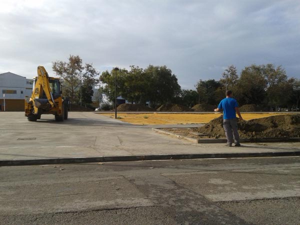 En el otro extremo del tablero superior, el más próximo a la glorieta que comunica con la barriada de las 512 viviendas y el cementerio de Puerto Real, se ha estado trabajando en la instalación del sistema de riego. Hay que recordar que se dispondrá un sistema automático de riego por goteo que precisa de unas canalizaciones subterráneas de muchos metros longitudinales y puntos de salida de líquido.