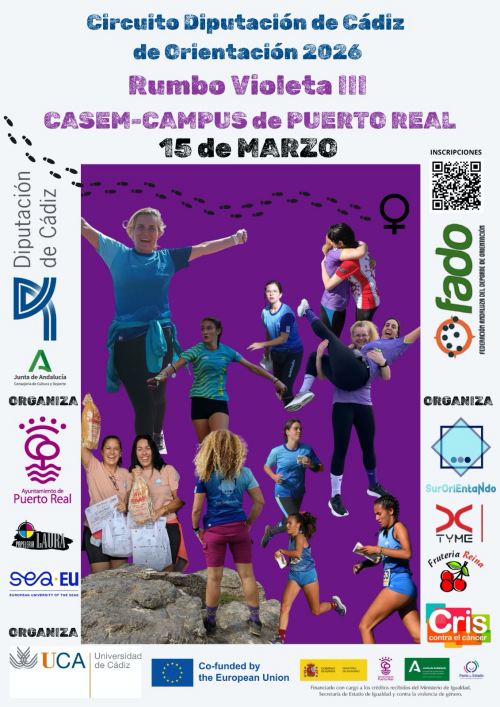 La Universidad de Cádiz acogerá el próximo domingo 15 de marzo, en el Campus de Puerto Real, la tercera edición de Rumbo Violeta, una cita deportiva incluida en la programación del Día Internacional de la Mujer del Ayuntamiento de Puerto Real que abre el Circuito Diputación de Cádiz de Orientación 2026.