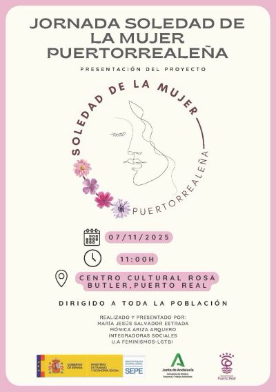 Este viernes a las 11:00 horas, el Centro Cultural Rosa Butler será escenario de la presentación del proyecto “Soledad de la mujer puertorrealeña”, una iniciativa impulsada por la Unidad de Feminismos del Ayuntamiento de Puerto Real desarrollada por las integradoras sociales María Jesús Salvador Estrada y Mónica Ariza Arquero, contratadas temporalmente a través del Programa Andalucía Activa.