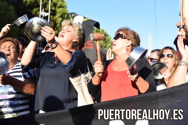Los vecinos del Río San Pedro se manifestaron este jueves contra el tendido eléctrico que atraviesa una de las calles de la barriada puertorrealeña. Algo más de 200 personas secundaron la protesta muy seguida por los vecinos.