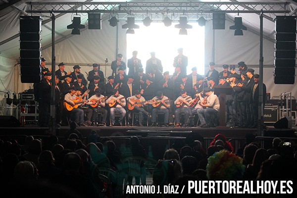 Las coplas se fueron sucediendo, con tiempo también para recordar a los que no están y con los aplausos del público que llenó la carpa instalada en la Plaza Jesús. Tiempo también para otra modalidad, en este caso la chirigota “Los auténticos camaleones” del pasado carnaval, que interpretó su pasodoble de homenaje al Coro “que vuelva el tango ribereño de Puerto Real”.