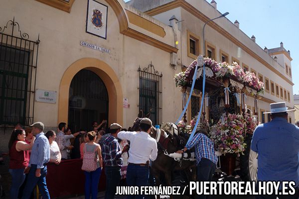 Desde primera hora del martes, los puertorrealeños se dieron cita en la Capilla de Nuestra Señora del Rocío en el Gallinero para asistir a la misa con la que arrancaba una intensa jornada que acabaría con la tradicional pernocta en el Palacio de Marismillas, antes de reanudar en la jornada del miércoles su camino hacia La Aldea.