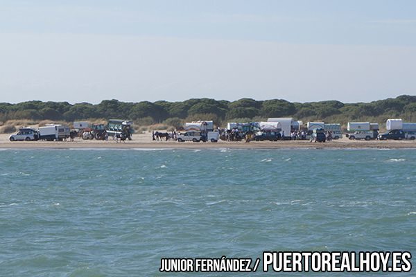Los 80 peregrinos de la ciudad, 25 coches, 1 carreta y 3 tractores iniciaron tras la misa la ruta marcada por La Villa antes de poner rumbo a Sanlúcar de Barrameda, donde pasadas las 17.30 h. la Hermandad de Puerto Real realizó el embarque hacia Doñana, antes de que hiciera lo propio la Hermandad de Cádiz.