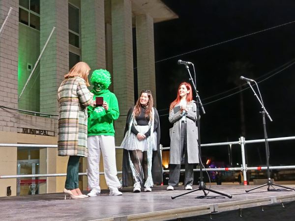El acto, celebrado en la Plaza Rafael Alberti, contó con la presencia de la alcaldesa Aurora Salvador y la concejala de Cultura y Fiestas Nazaret Ramírez, encargadas de entregar la distinción y recibir al Jartible, representado este año por José Antonio González Boy, que subió al escenario acompañado por sus hijos.