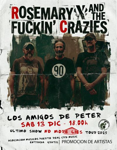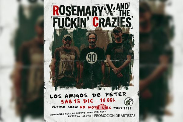 La agenda musical de Puerto Real tiene una cita ineludible este fin de semana. La Asociación de Músicos de Puerto Real CRD Music ha organizado el evento que marca el «Último Show» de la No More Lies Tour 2025 de la banda Rosemary & The Fuckin’ Crazies.